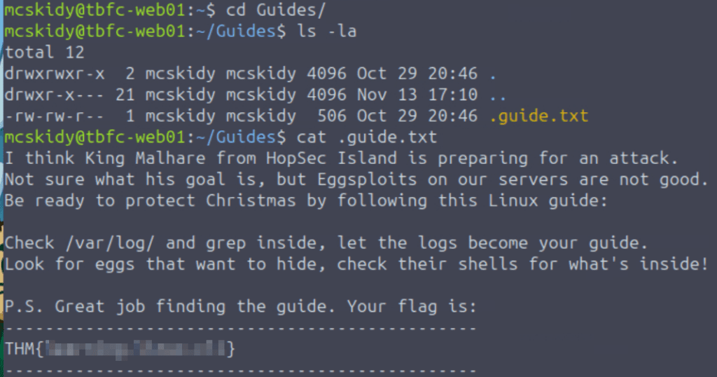Read the bash history file, identify the flag, and then copy and paste it in to complete the room!
