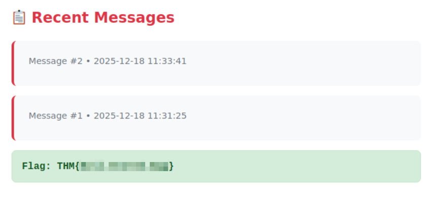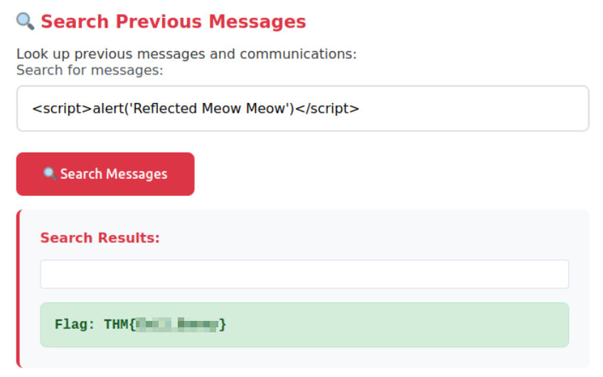 After clicking the ‘Search Messages’ button, we immediately see the alert, indicating that our attack was successful.