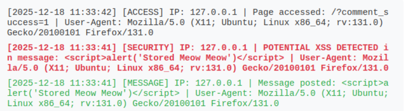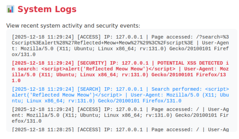 If we check the system logs, we can see several entries generated by our activities, including one generated by a security appliance. In an enterprise scenario, this activity should trigger triage within a security operations center (SOC).
