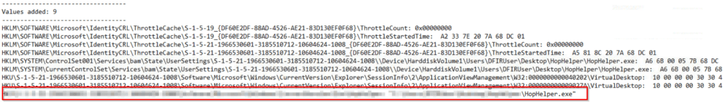 After generating the log file, we can search for the HopHelper executable as shown below:
