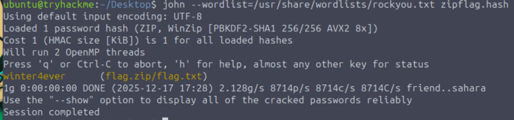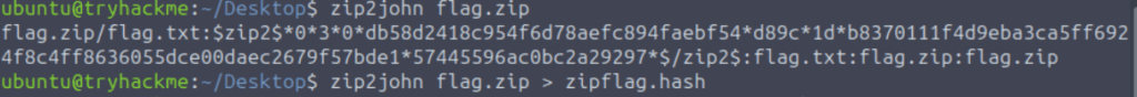 Next I generated a hash using ‘zip2john’: